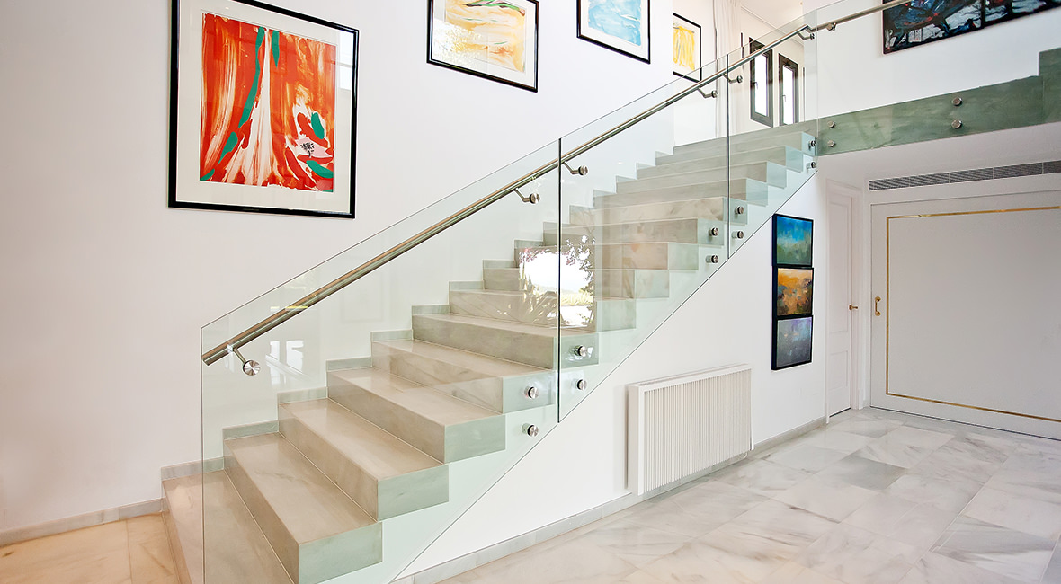 Presque aucun bâtiment ne peut se passer de rampes ou de balustrades. Qu’il s’agisse d’escaliers, de balcons, de fenêtres allant du sol au plafond ou de galeries, de galeries et de terrasses, dans de nombreux cas, la protection contre les chutes est indispensable. La combinaison de matériaux de haute qualité tels que l’acier inoxydable, le verre de sécurité feuilleté et l’aluminium permet de réaliser des solutions élégantes et « transparentes » qui offrent néanmoins la meilleure protection. Glasdienst24 est spécialisé dans ces solutions. Nous réalisons pour vous des rampes et des balustrades en verre qui mettront en valeur votre propriété et dont l’esthétique est garantie !